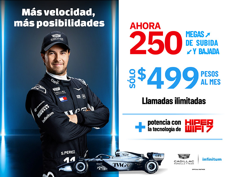 Precios con impuestos incluidos. La renta incluye llamadas ilimitadas a números fijos y móviles en México, Estados Unidos, Canadá y hasta 180 países más, consulta lista de destinos completa en telmex.com/destinosLDI Las velocidades comunicadas son en Megas (Megabits por segundo) y corresponden a la velocidad máxima de transferencia de datos ofrecida y alcanzable, la velocidad de bajada y subida podrá variar en función de las condiciones técnicas del módem, cantidad de dispositivos conectados simultáneamente y/o la distancia entre el domicilio del usuario y la central. A partir del 7o mes el cliente continuará con la velocidad de su paquete originalmente contratado. La velocidad aplica para usuarios activos sin adeudos en sus servicios de telecomunicaciones y nuevos que cuentan con fibra óptica instalada. Netflix 2 pantallas Full HD estándar con anuncios sin costo durante 6 meses. Todos los derechos reservados. A partir del 7° mes se pagará la renta del OTT. Netflix, Universal+ en Claro Video, Claro Drive, Infinitum Mail y Antivirus, son servicios proporcionados por un tercero. Hiper Wifi 7 no está incluido. La oferta anunciada corresponde a la adquisición de 2 equipos Mesh “HIPER WiFi 7” (incluye 2 equipos Mesh, 2 cables de red Ethernet y 2 adaptadores de corriente). Promoción aplicable a usuarios nuevos y existentes. CAT mensual del 4.7%. Consulta disponibilidad y compra en Centros de Atención Telmex y en telmex.com/tiendaenlinea Clientes No Infinitum, pueden verificar disponibilidad y precios en esta misma página. Los equipos serán entregados en el domicilio de tu Recibo Telmex. Plazos, condiciones, inscripciones IFT (ahora CRT) y velocidades promedio de descarga aplicables en telmex.com/terminoshogar Vigencia 31 de marzo de 2026.
