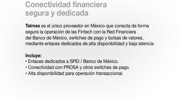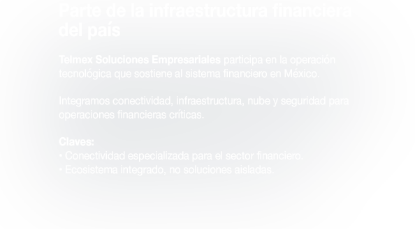 Infraestructura, Conectividad y Ciberseguridad diseñadas para operar dentro del Sistema Financiero Mexicano.