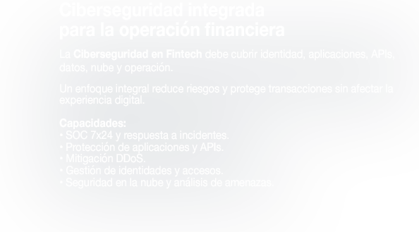 Conecta tu operación al sistema financiero, escala en la nube y protege cada transacción con un ecosistema integral.