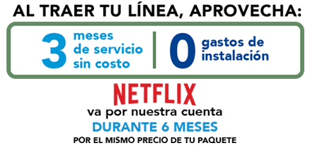 Al contratar tu Paquete o domiciliarte Netflix va por nuestra cuenta 6 meses por el mismo precio