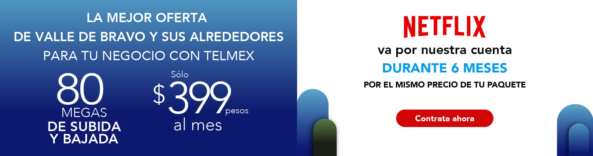 Precios con impuestos incluidos. La renta incluye llamadas ilimitadas a números fijos y móviles en México, Estados Unidos, Canadá y hasta 180 países más, consulta lista de destinos completa en telmex.com/destinosLDI Las velocidades comunicadas son en Megas (Megabits por segundo) y corresponden a la velocidad máxima de transferencia de datos ofrecida y alcanzable, la velocidad de bajada y subida podrá variar en función de las condiciones técnicas del módem, cantidad de dispositivos conectados simultáneamente y/o la distancia entre el domicilio del usuario y la central. La velocidad aplica para usuarios activos y nuevos que cuentan con fibra óptica instalada. Netflix 2 pantallas Full HD, estándar con anuncios. Todos los derechos reservados. A partir del 7° mes se pagará la renta del OTT. Netflix, Claro Drive y Soluciones Negocio son servicios proporcionados por un tercero. Plazos, condiciones, inscripciones IFT (ahora CRT) y velocidades promedio de descarga aplicables en telmex.com/terminosnegocio telmex.com/terminosnegocio